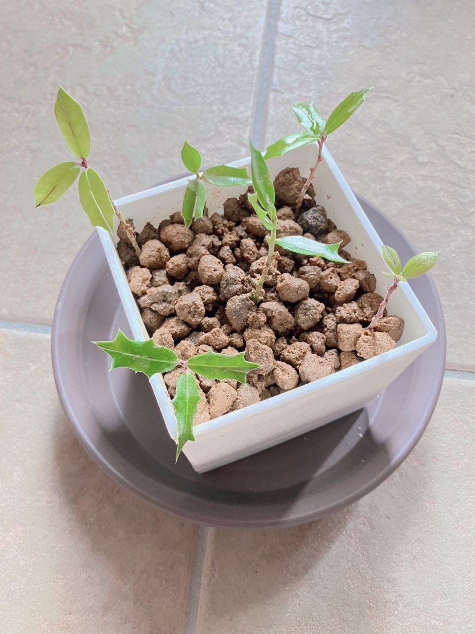 3月 新しい月のはじまりの昨日わが家の鉢植えヒメヒイラギの春挿し(休眠枝挿し)に挑戦✨今まで幾度か失敗しているけれど今回はAiからのアドバイスをしっかり受けて成功しそう…かな 笑赤玉土を使用先端の葉を3枚残して、切り込みを入れる。朝、葉っぱにシュッシュと軽く霧吹き🌱そして〜どんなに見たくても根っこが出ているか確認しない 笑触りすぎない 笑がんばるぞヽ(´▽`)/3月が穏やかな月でありますように。