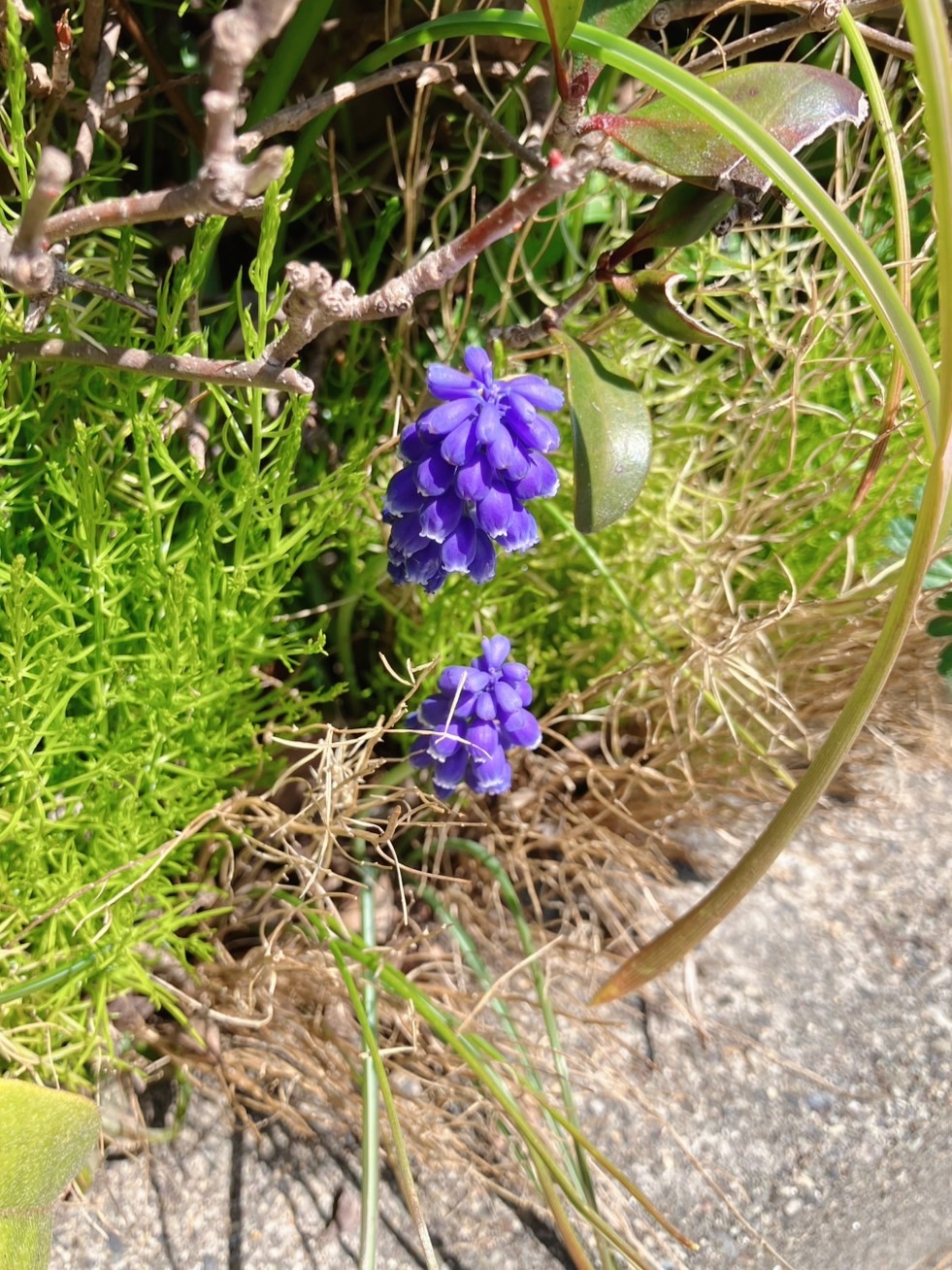 空き地で見かけた、紫のムスカリ